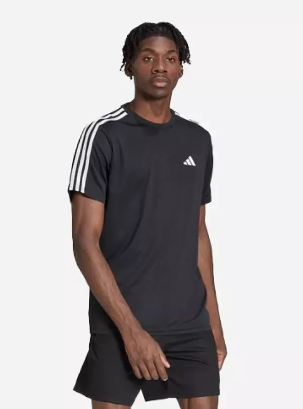 Chez Adidas, vous pouvez retrouver le t-shirt manches courtes pour homme TR-ES BASE 3S T, conçu à partir de matériaux 100 % recyclés.