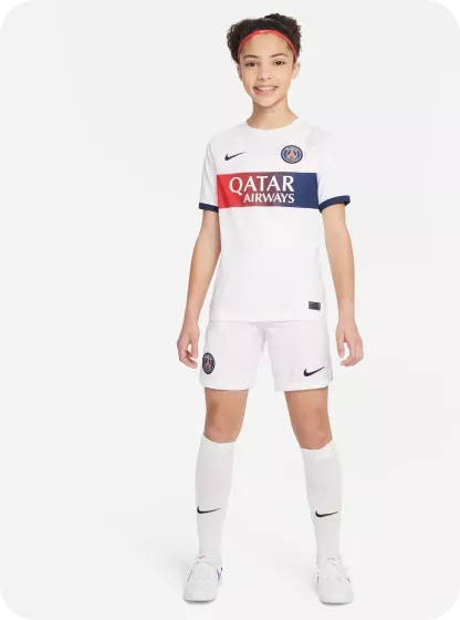 Maillot enfant PSG exterieurMaillot de foot Nike Dri-FIT (technologie anti-transpirante) pour ado. La tenue PSG 2023/24 Extérieur est inspirée de la Ville Lumière.